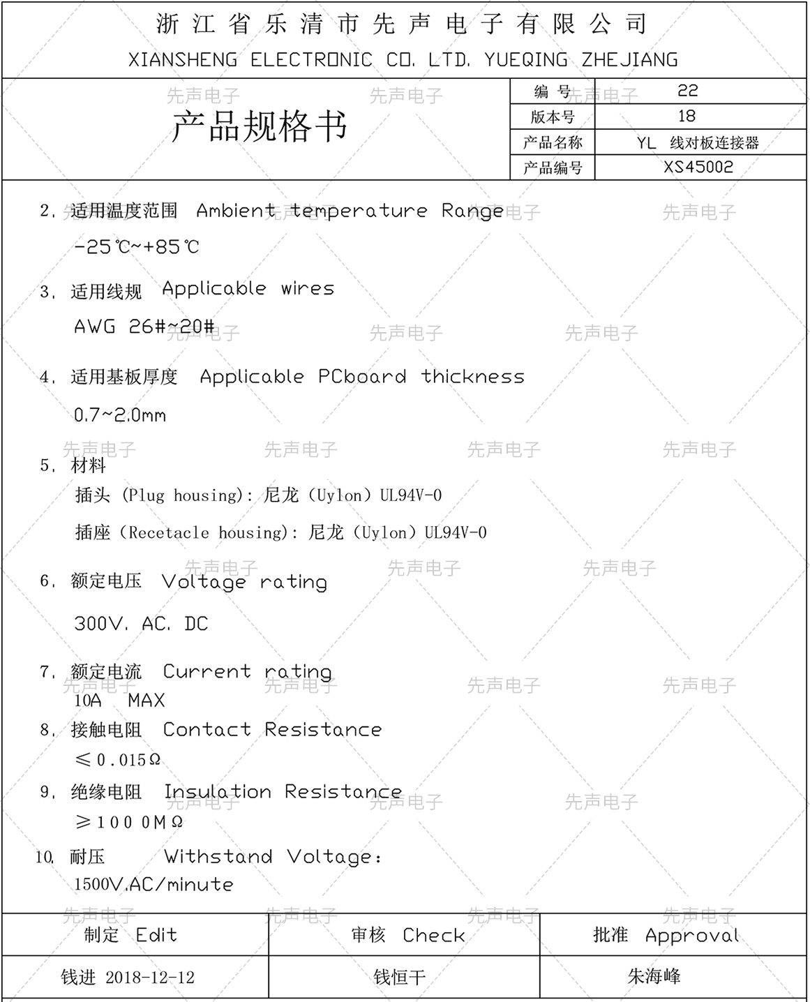 端子規(guī)格書